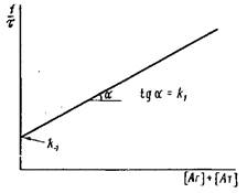 Величина ф называется временем релаксации. Анализ зависимости в координатах 1 / ч -— -~ позволяет найти по тангенсу угла наклона прямой значение ki, а по отрезку, отсекаемому на оси ординат, k-i.